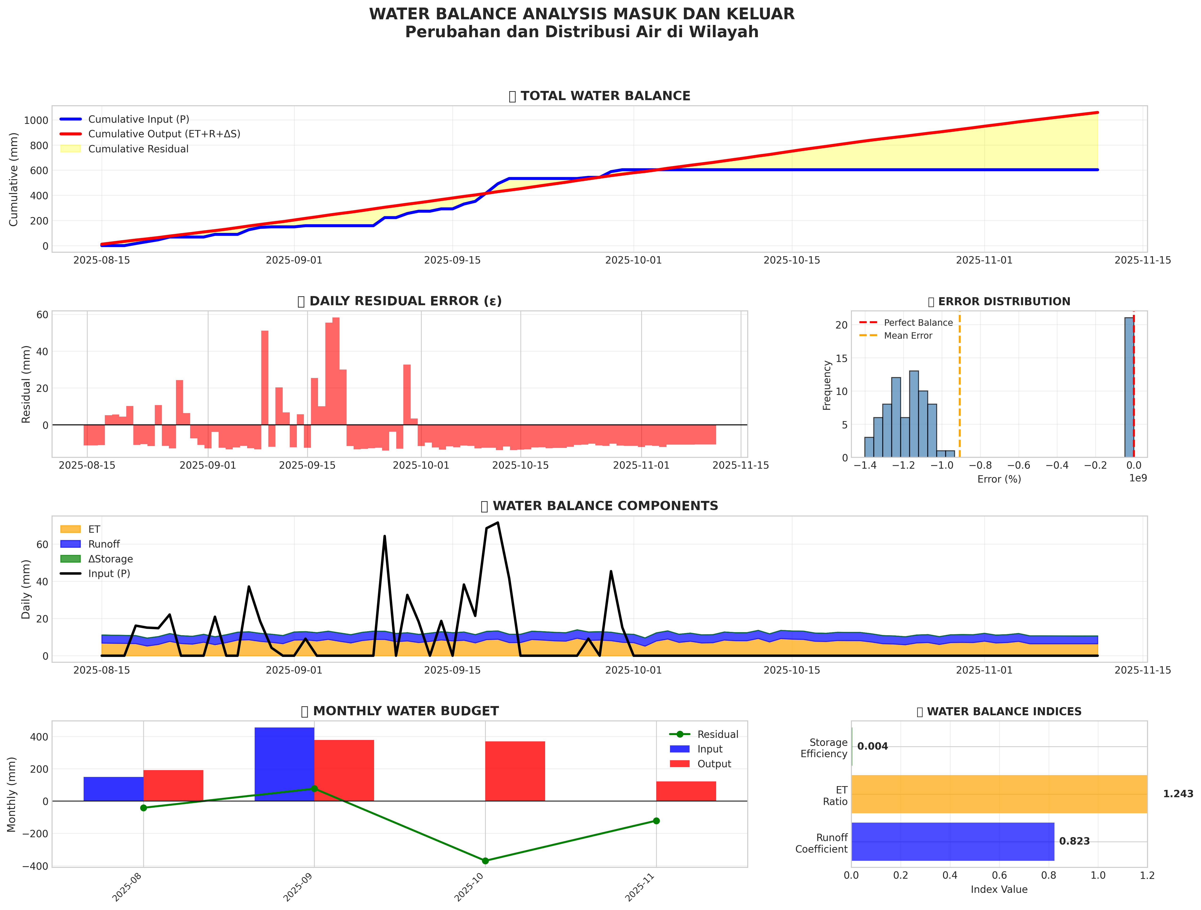 Visualisasi keseimbangan air: input vs output, komponen hidrologi