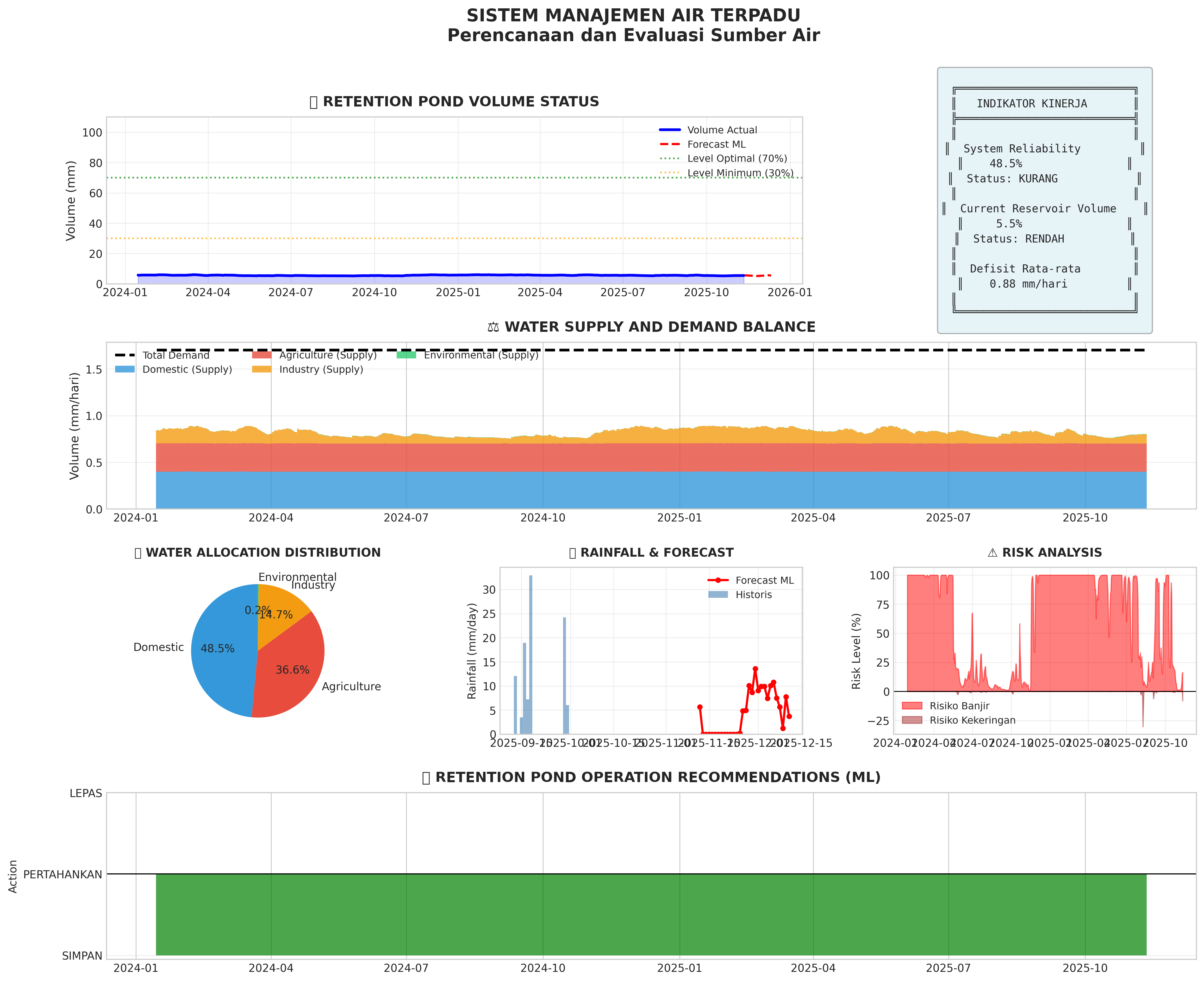 Dashboard utama menampilkan hasil analisis hidrologi dengan Machine Learning