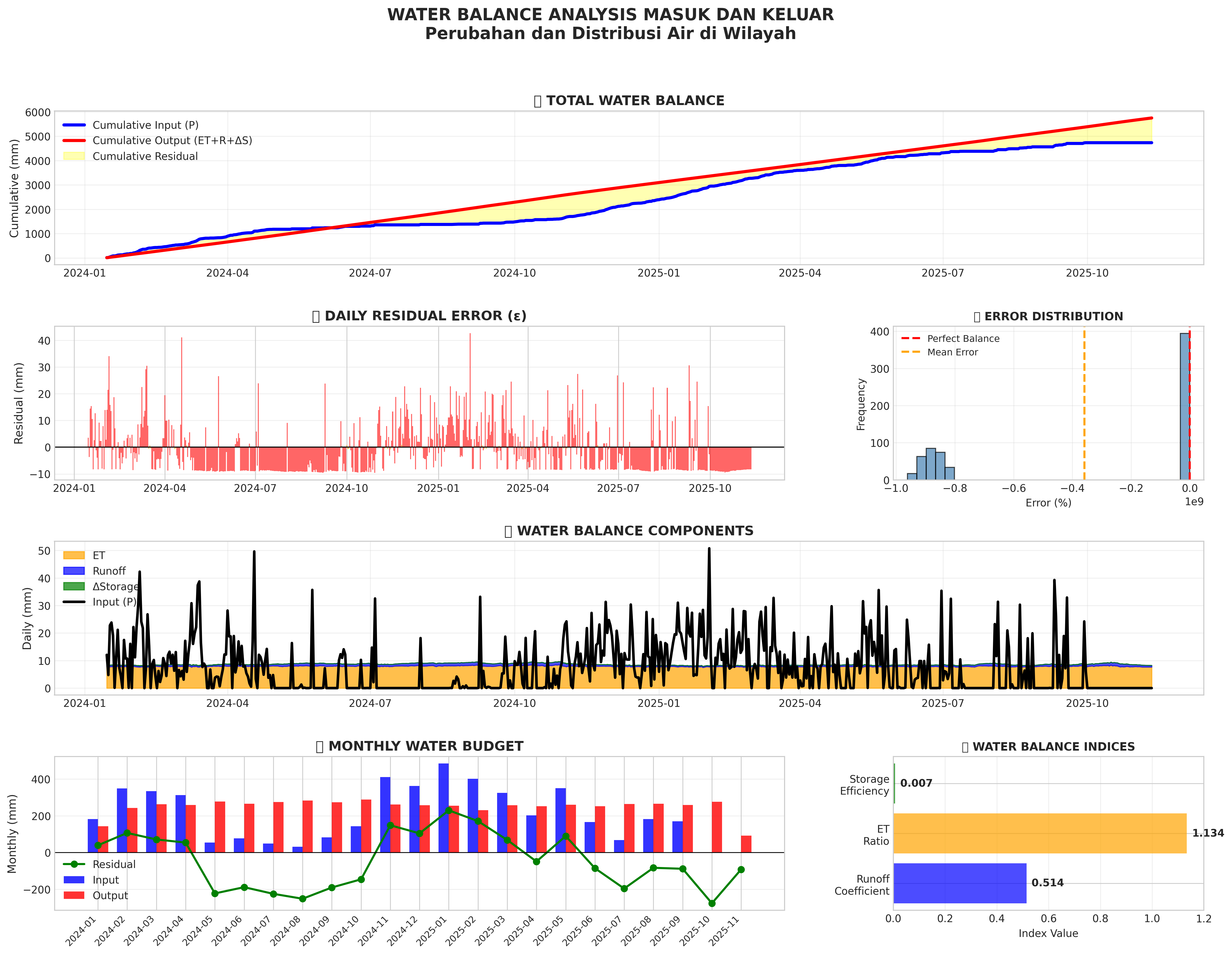 Visualisasi keseimbangan air: input vs output, komponen hidrologi
