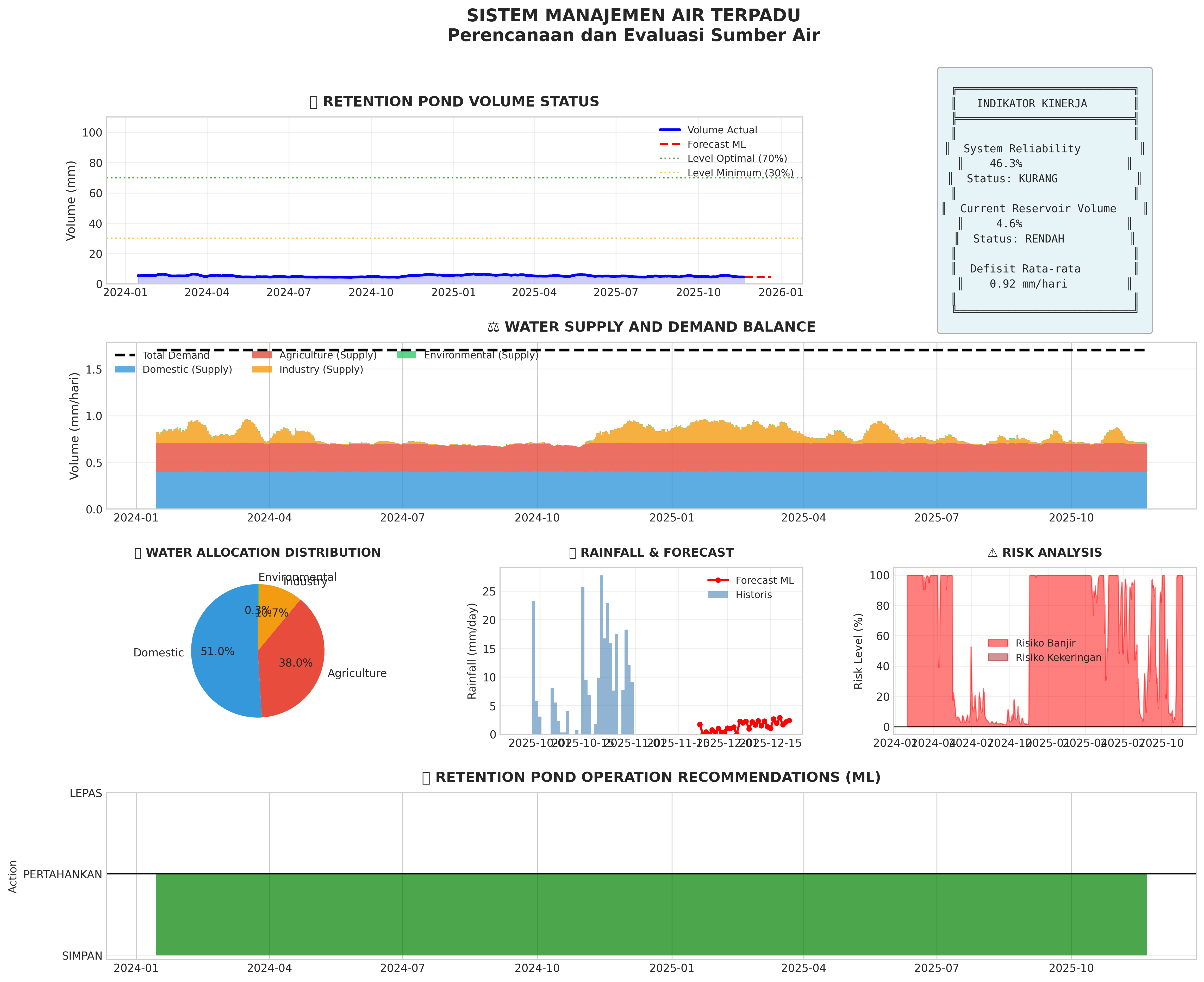 Dashboard utama menampilkan hasil analisis hidrologi dengan Machine Learning