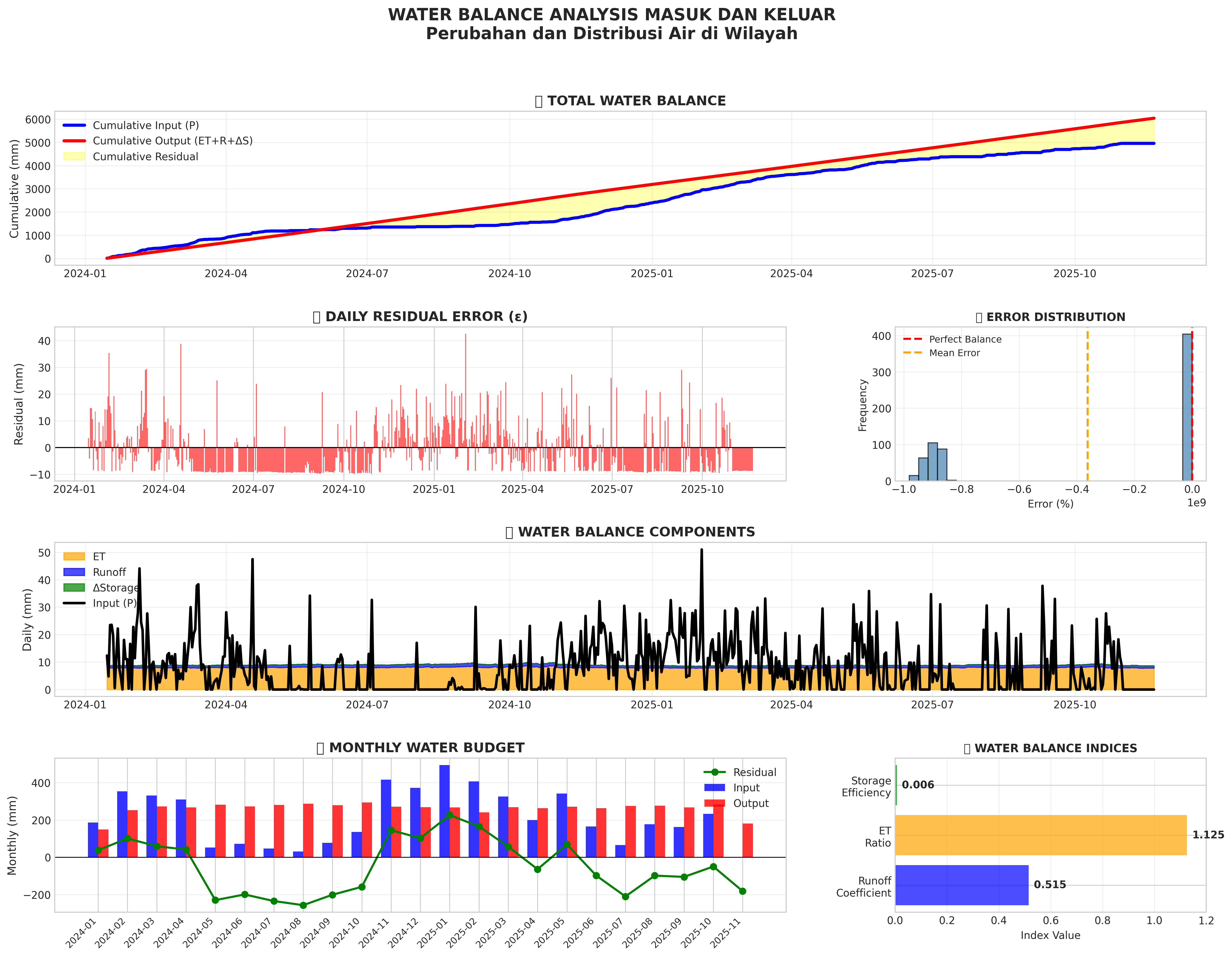 Visualisasi keseimbangan air: input vs output, komponen hidrologi