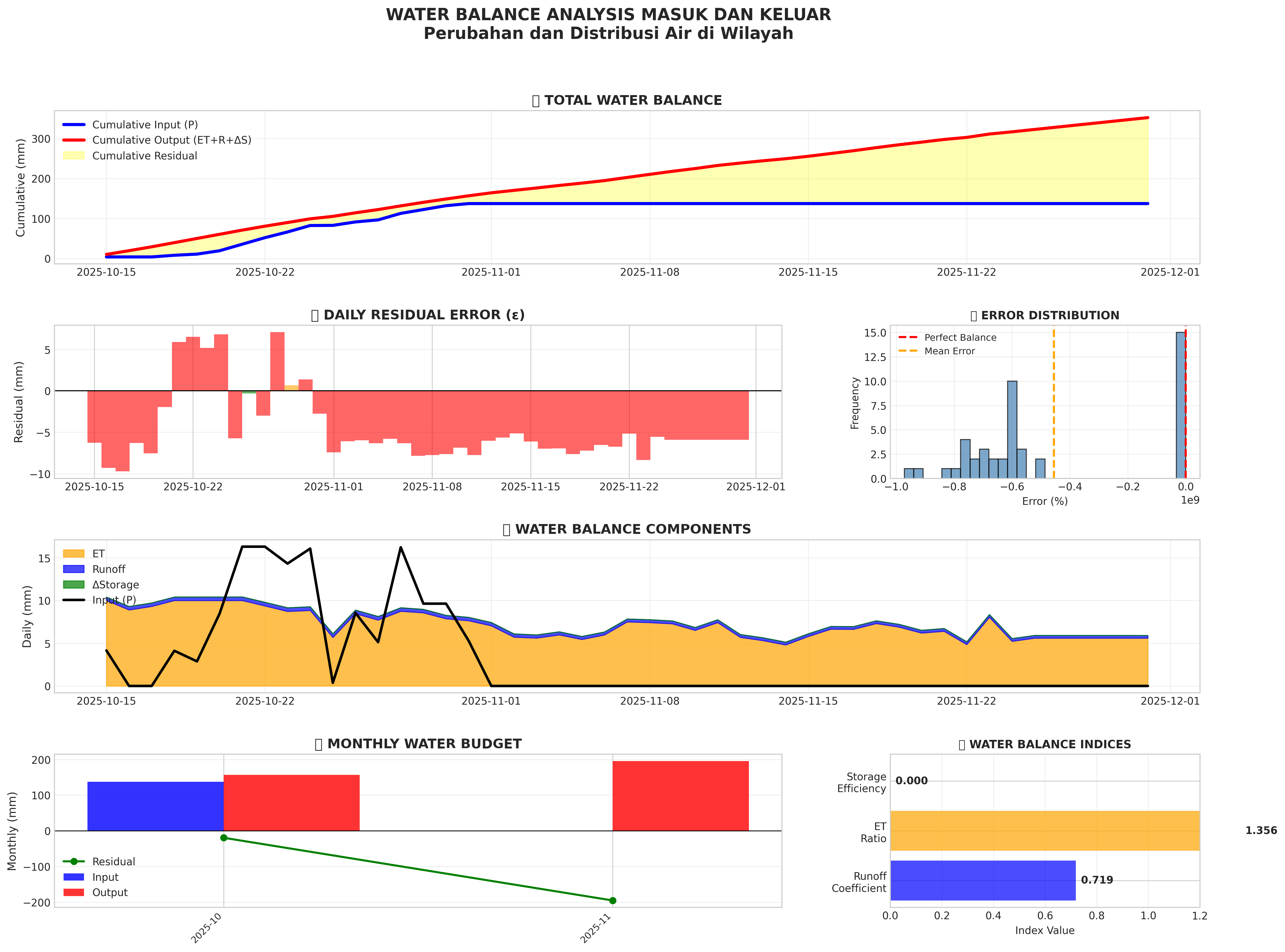 Visualisasi keseimbangan air: input vs output, komponen hidrologi
