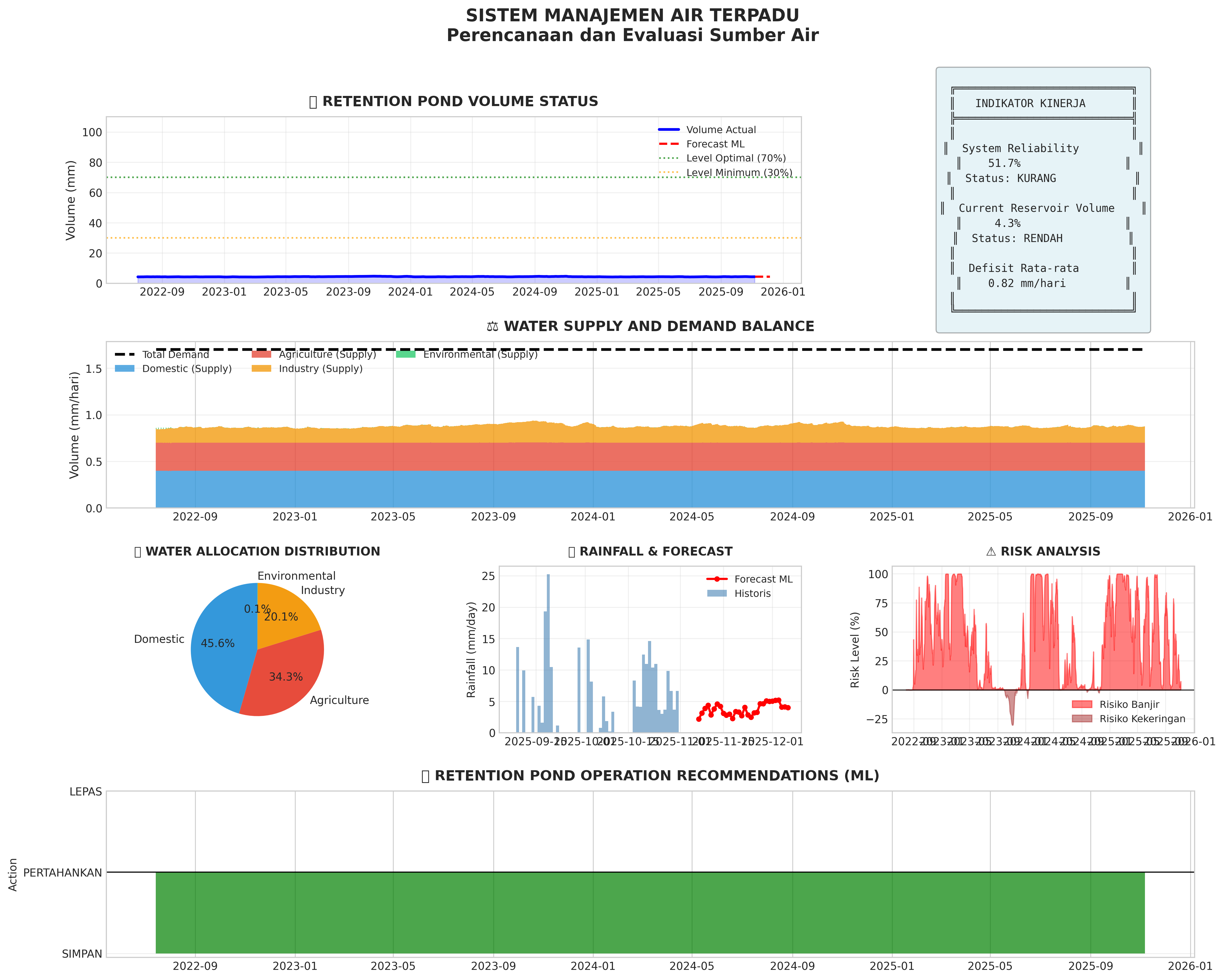 Dashboard utama menampilkan hasil analisis hidrologi dengan Machine Learning