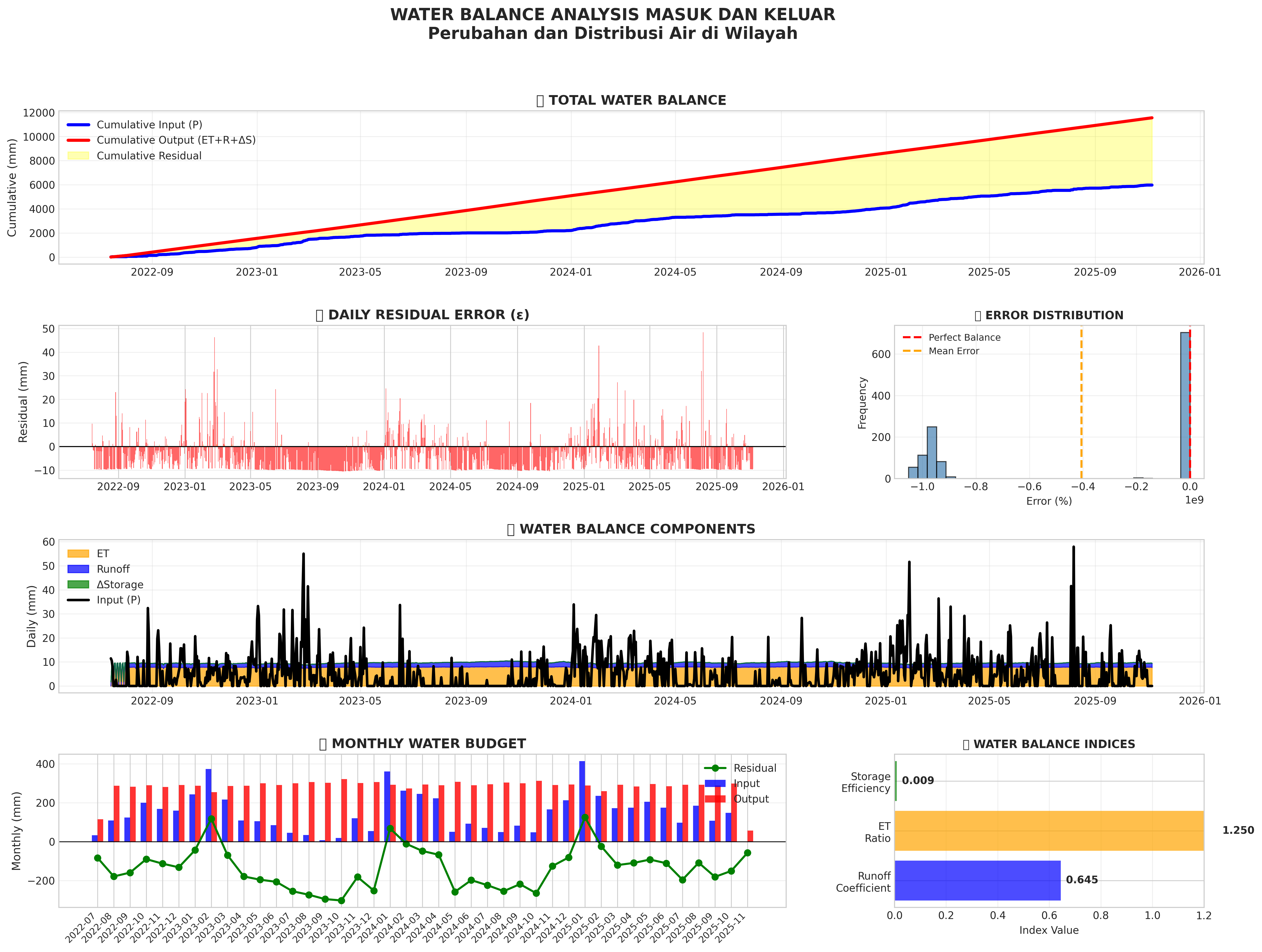 Visualisasi keseimbangan air: input vs output, komponen hidrologi