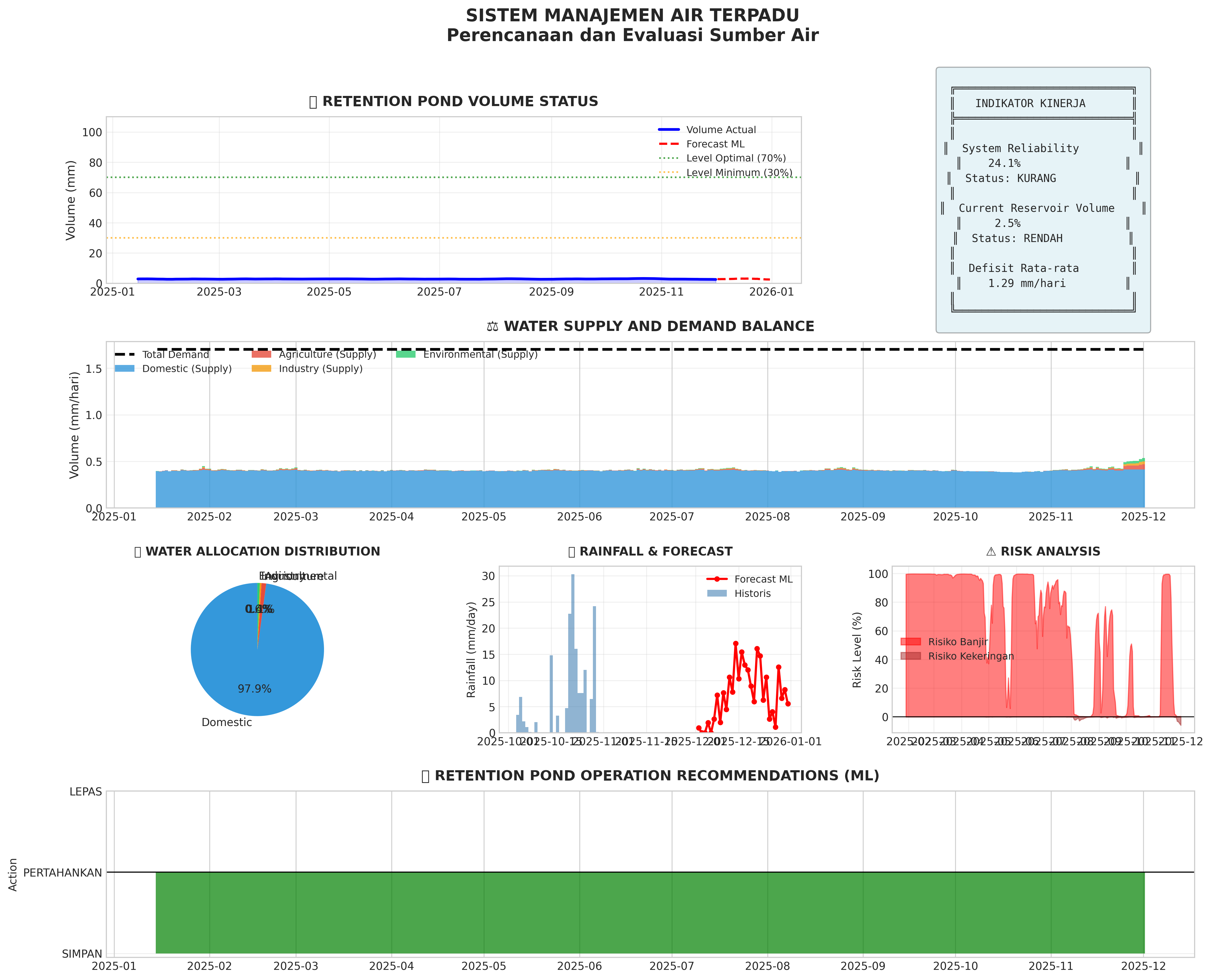 Dashboard utama menampilkan hasil analisis hidrologi dengan Machine Learning