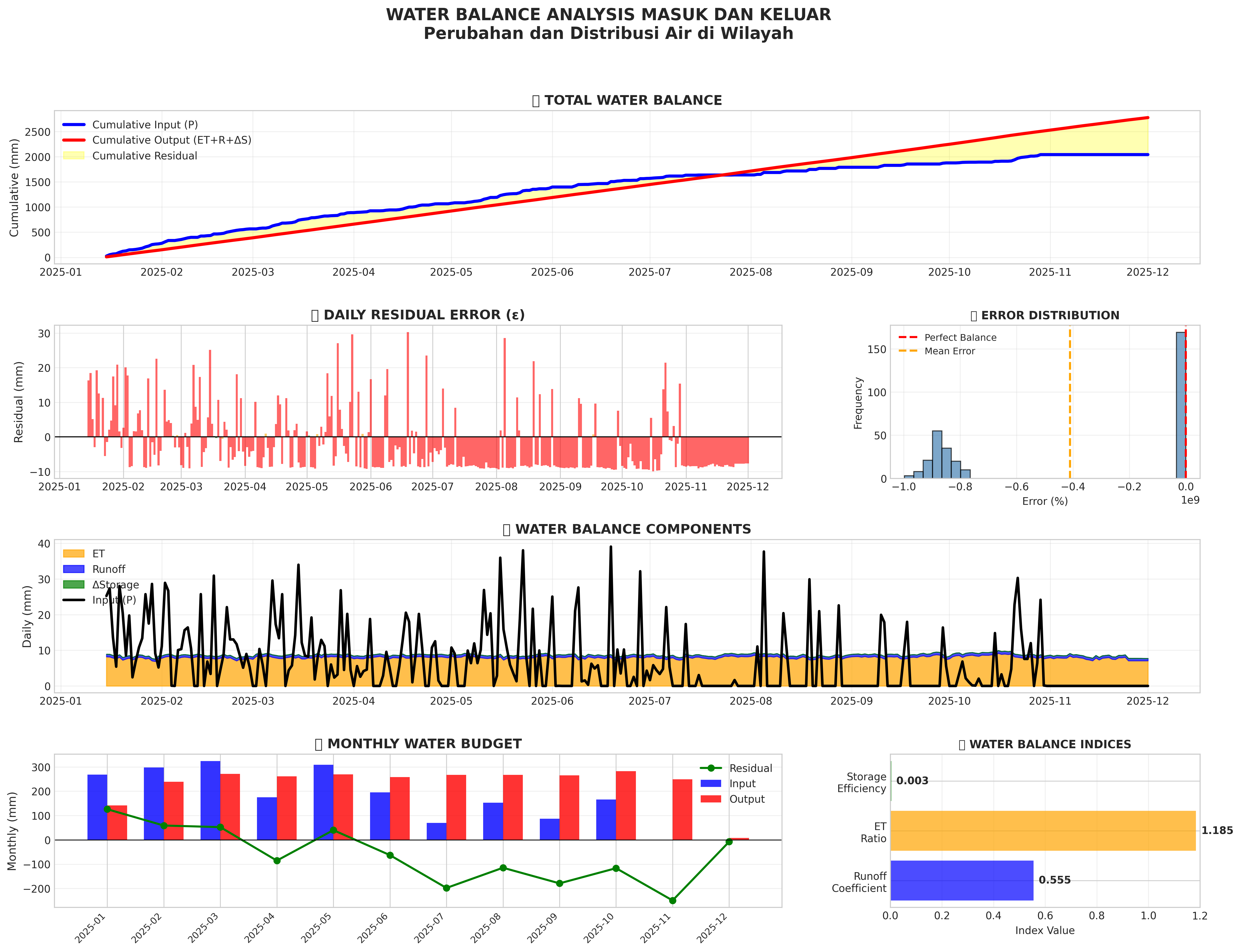 Visualisasi keseimbangan air: input vs output, komponen hidrologi