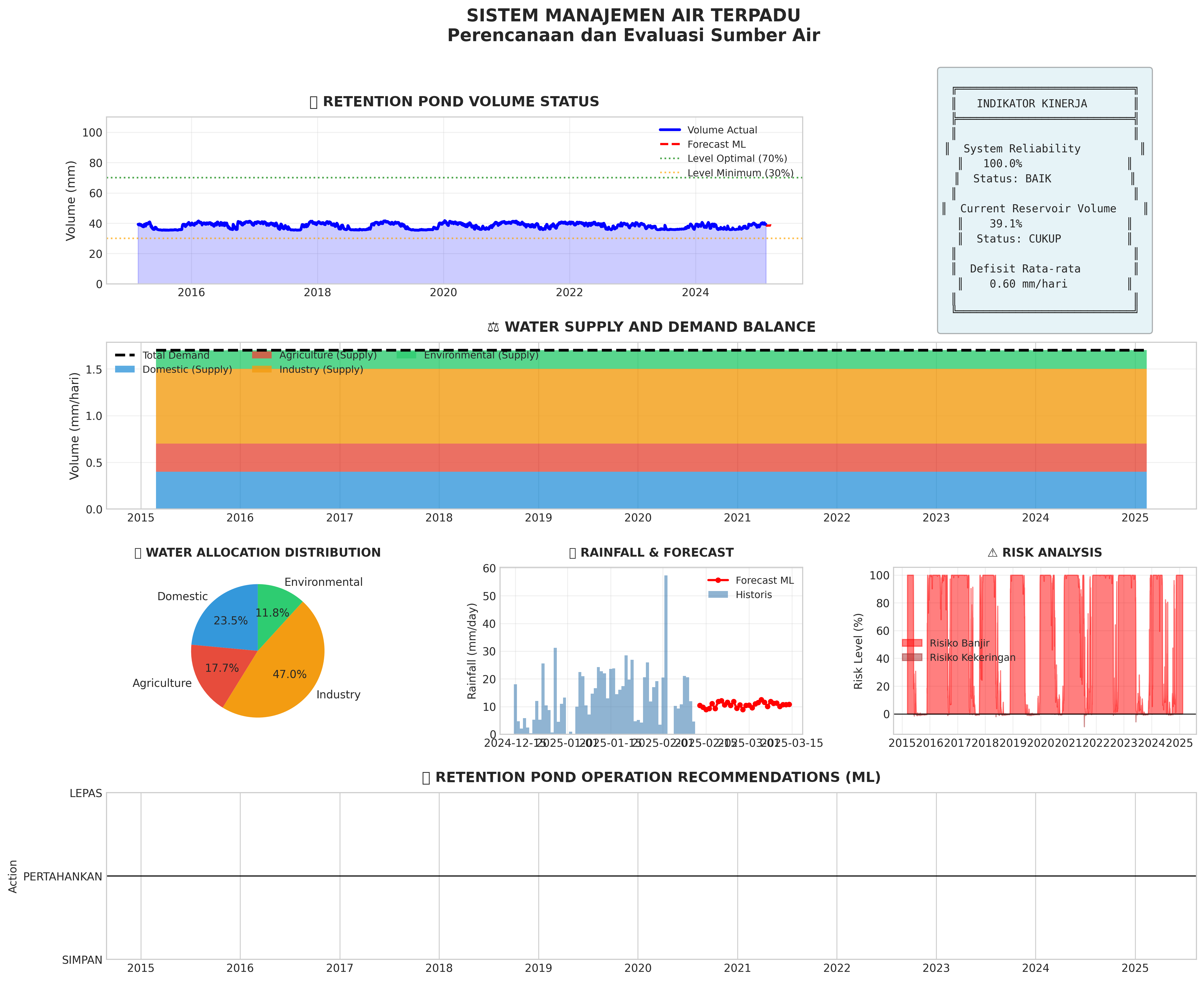 Dashboard utama menampilkan hasil analisis hidrologi dengan Machine Learning