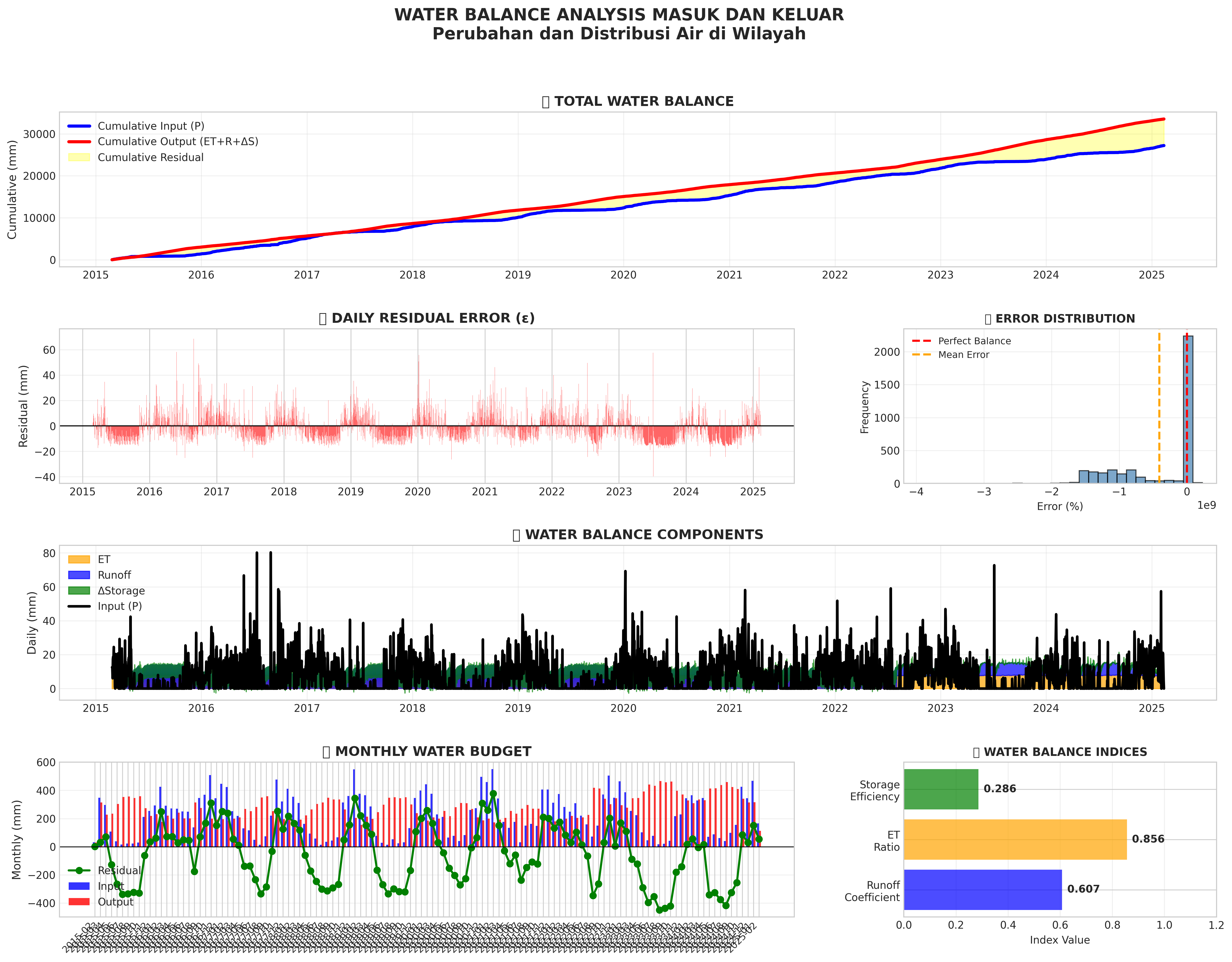 Visualisasi keseimbangan air: input vs output, komponen hidrologi