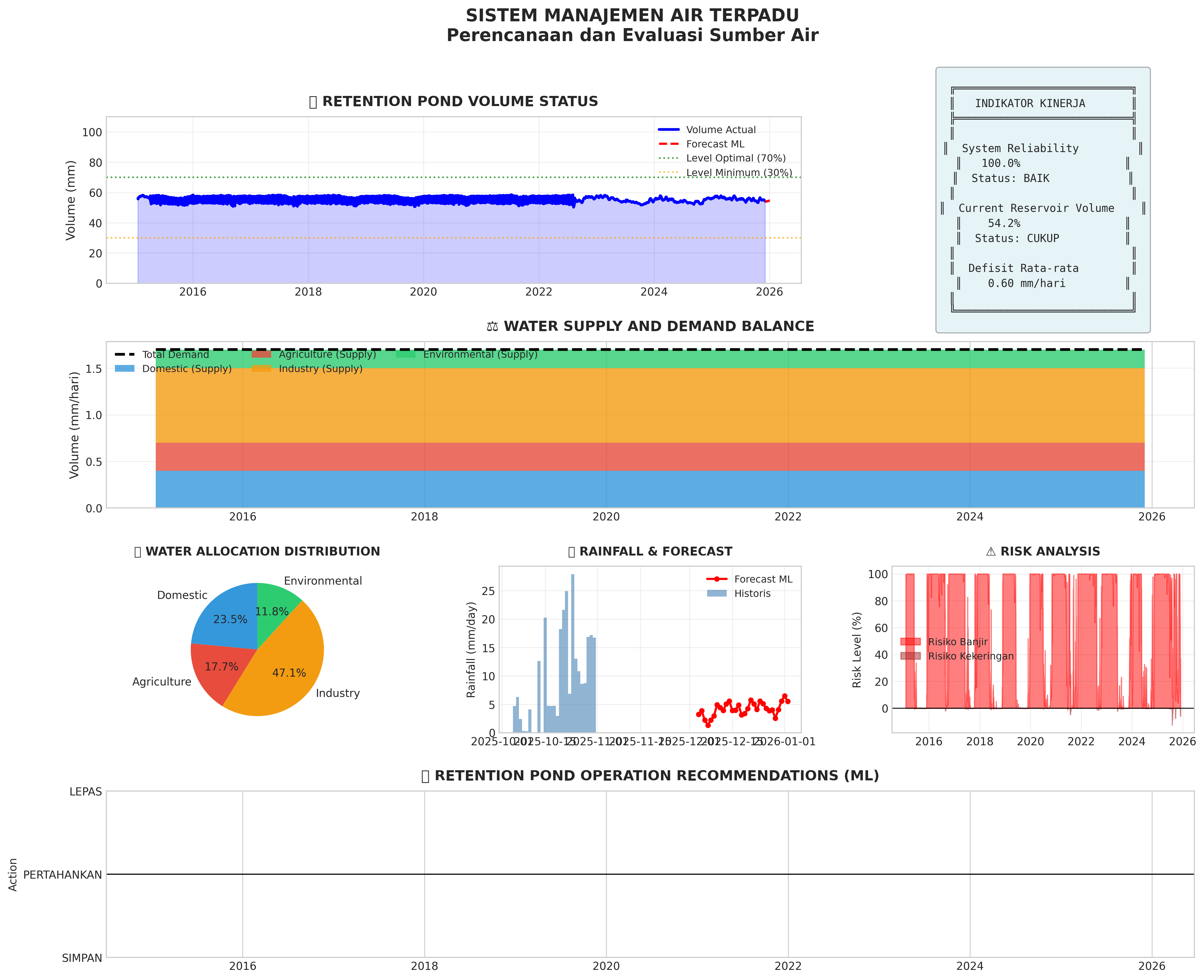 Dashboard utama menampilkan hasil analisis hidrologi dengan Machine Learning