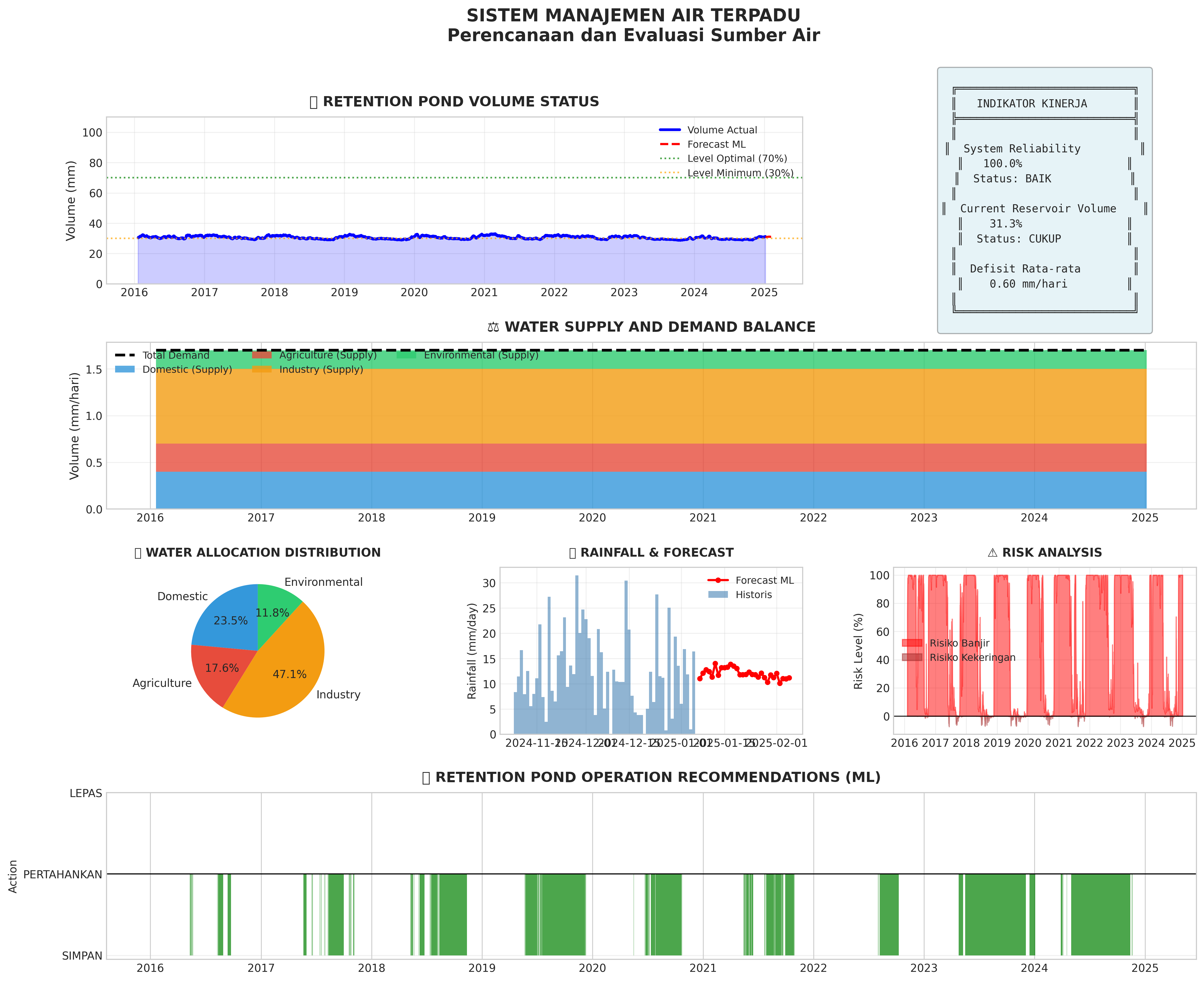 Dashboard utama menampilkan hasil analisis hidrologi dengan Machine Learning