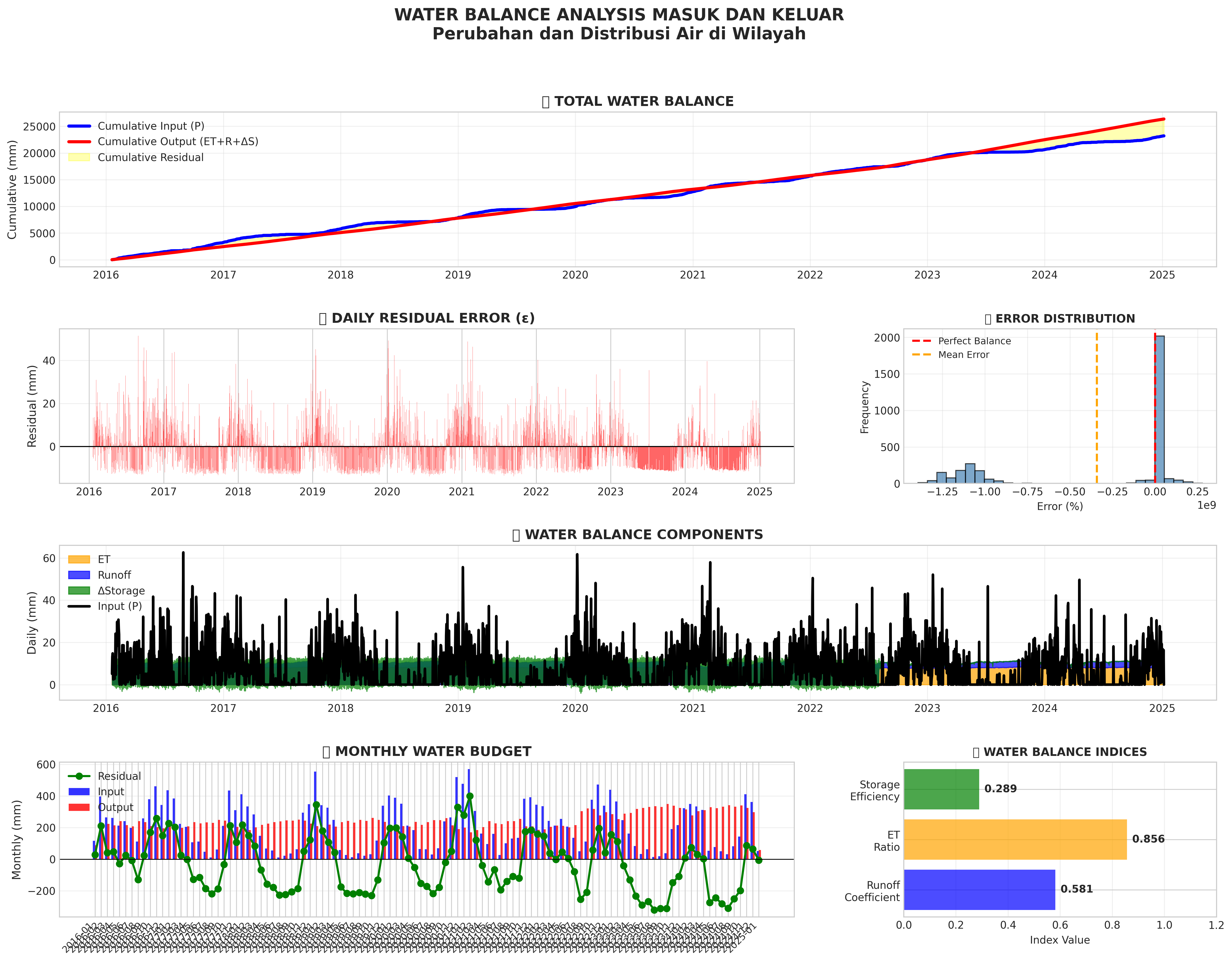 Visualisasi keseimbangan air: input vs output, komponen hidrologi