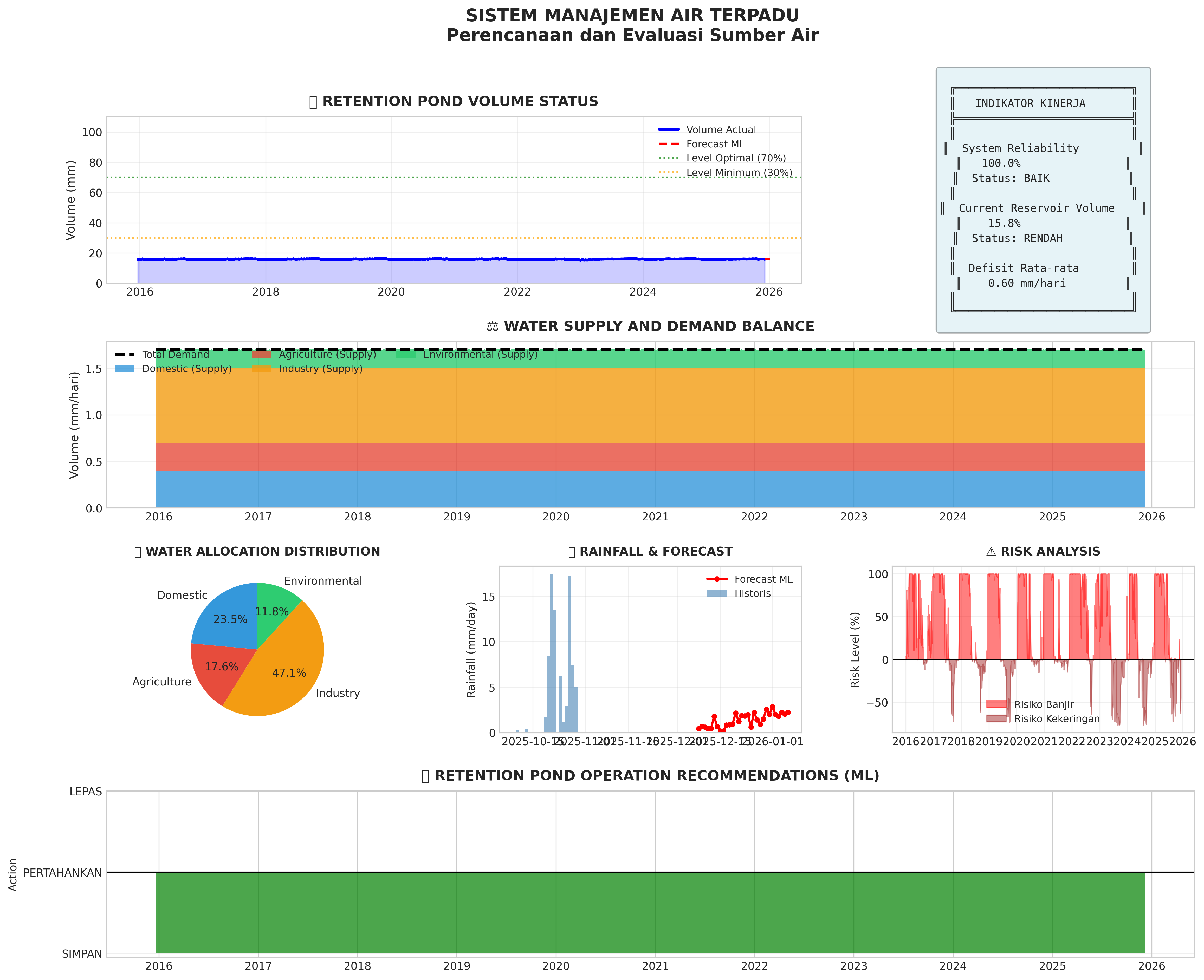Dashboard utama menampilkan hasil analisis hidrologi dengan Machine Learning