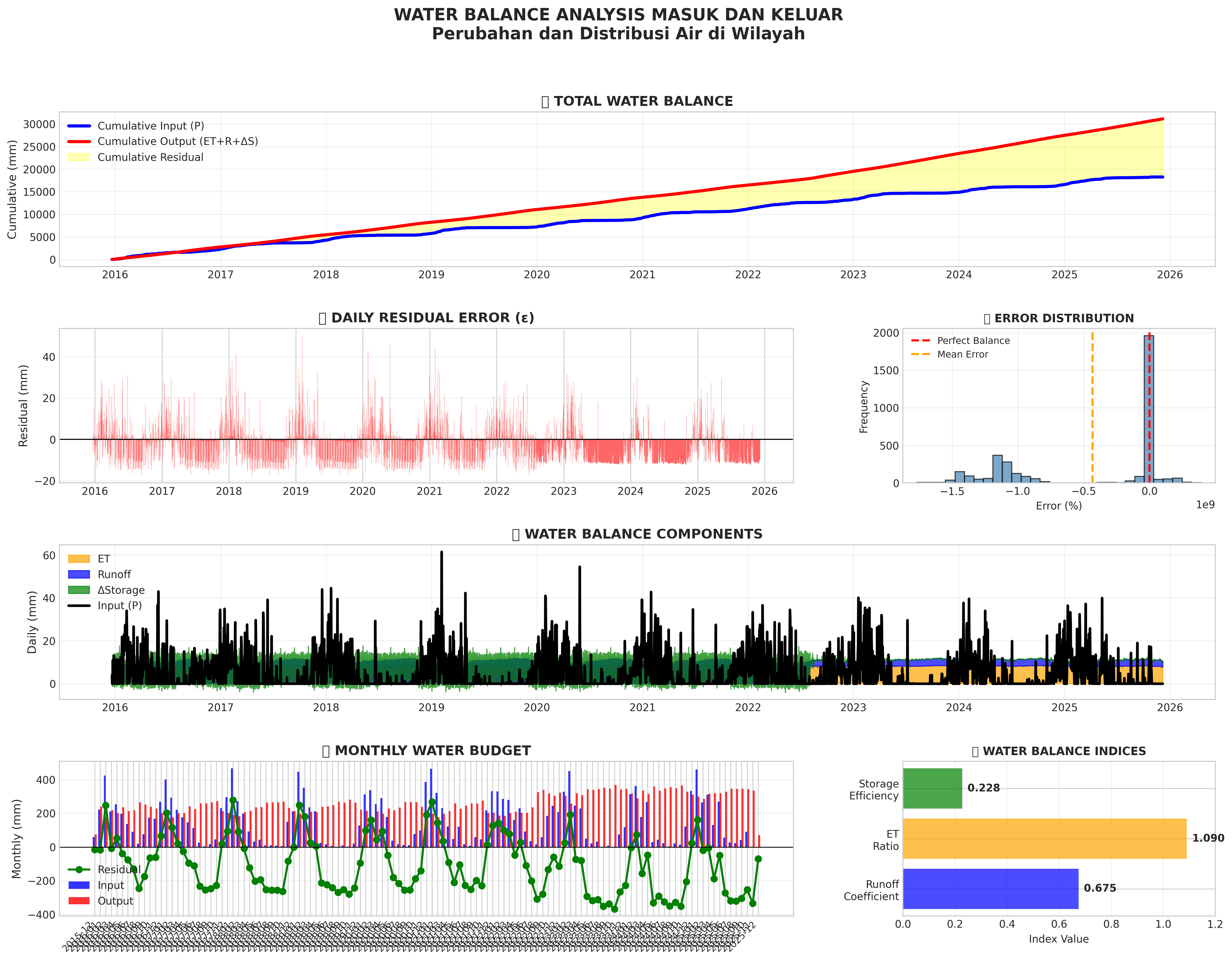 Visualisasi keseimbangan air: input vs output, komponen hidrologi