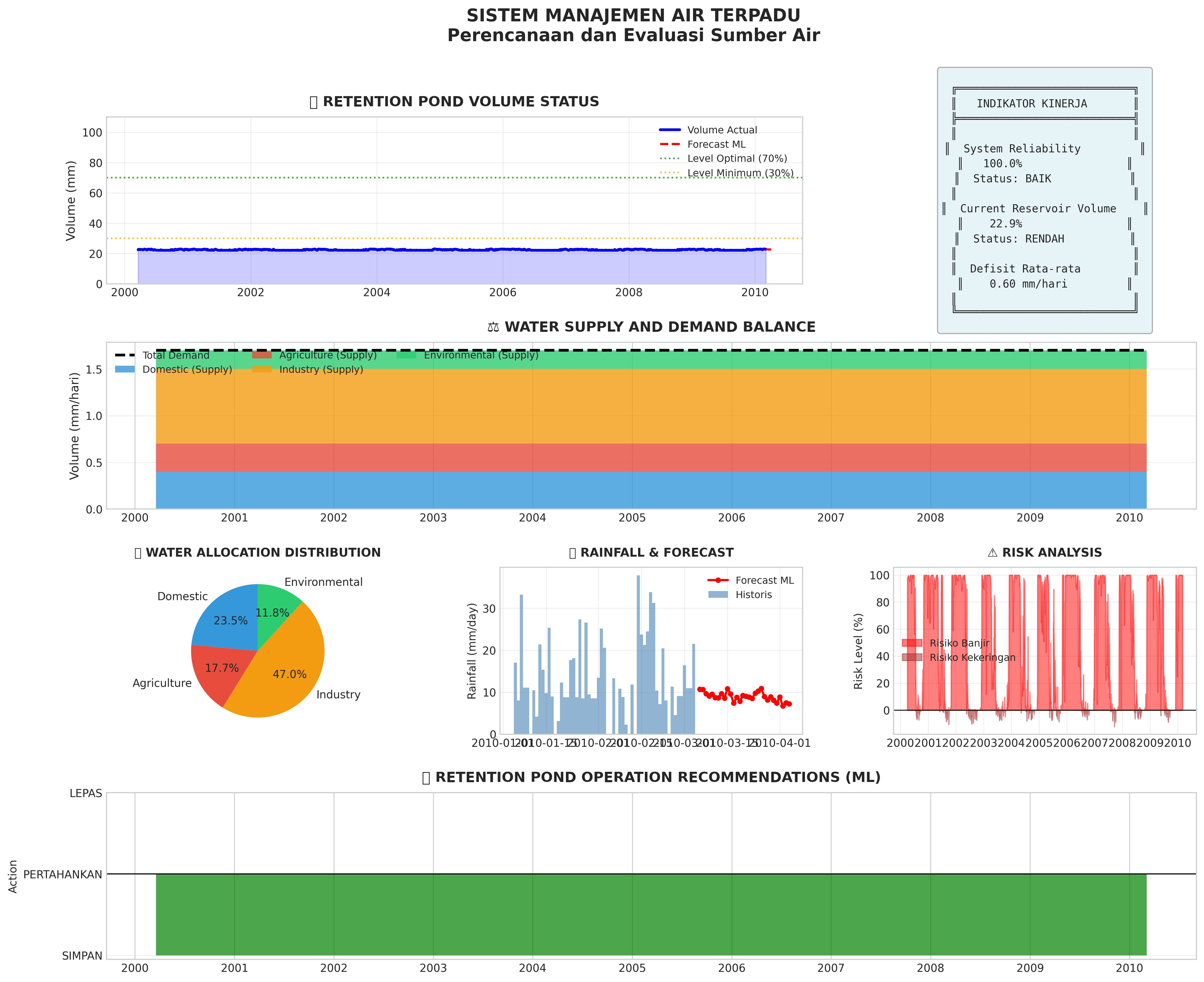 Dashboard utama menampilkan hasil analisis hidrologi dengan Machine Learning