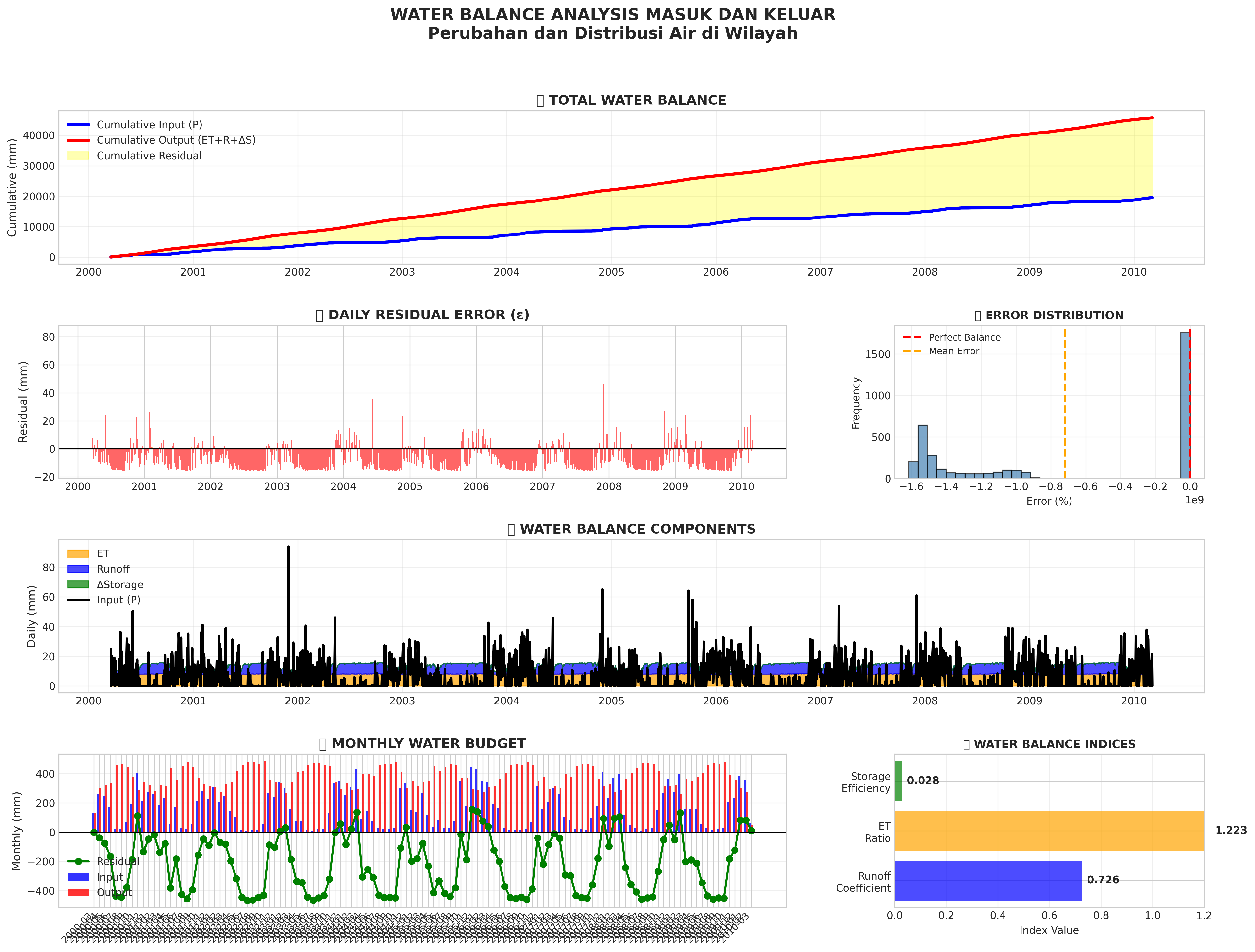 Visualisasi keseimbangan air: input vs output, komponen hidrologi