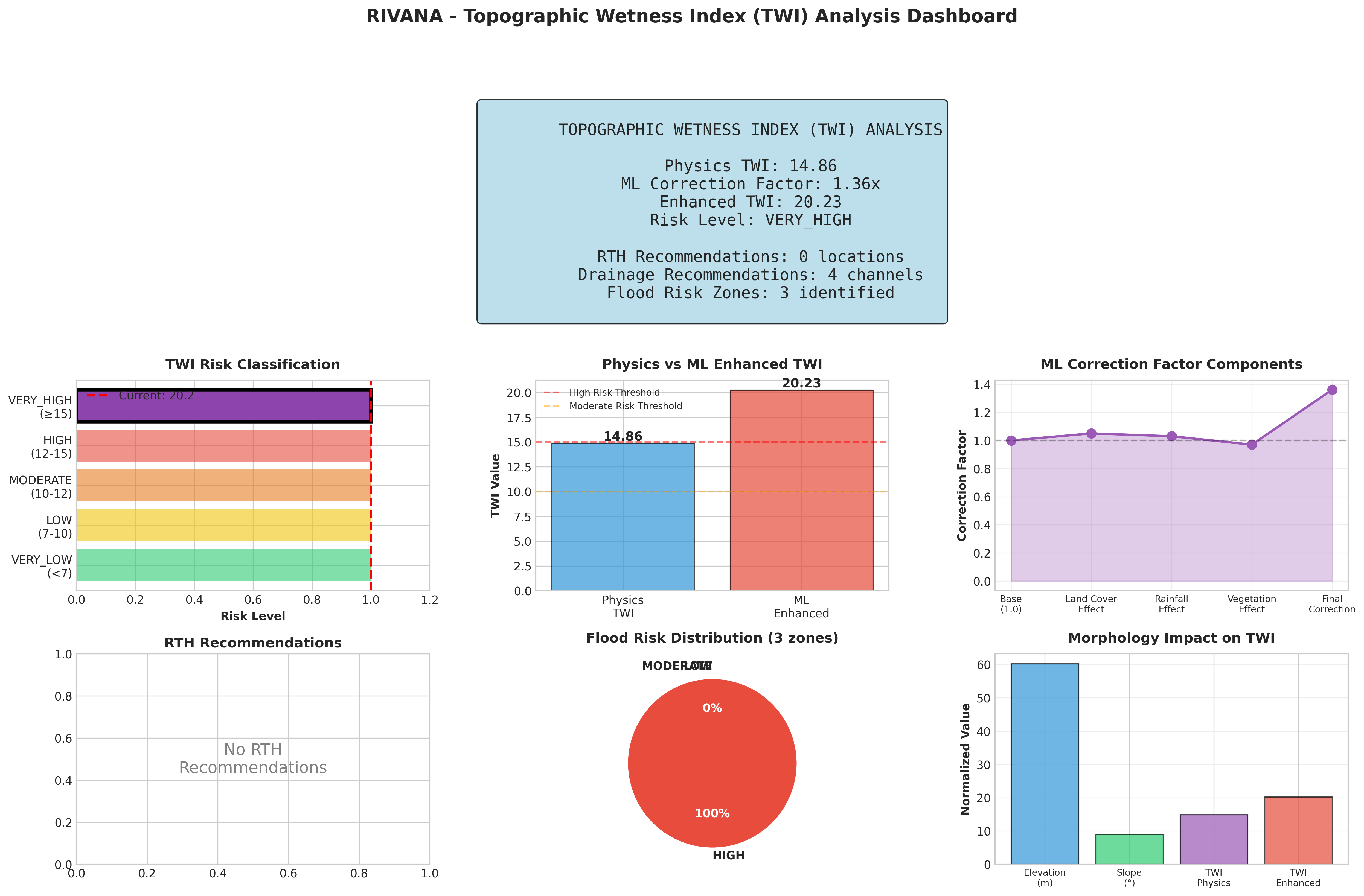 What is TWI? Topographic Wetness Index (TWI) is an index that measures how easily water accumulates in a location based on topography/terrain. The higher the TWI value, the greater the likelihood that the area will be flooded or waterlogged during rain.