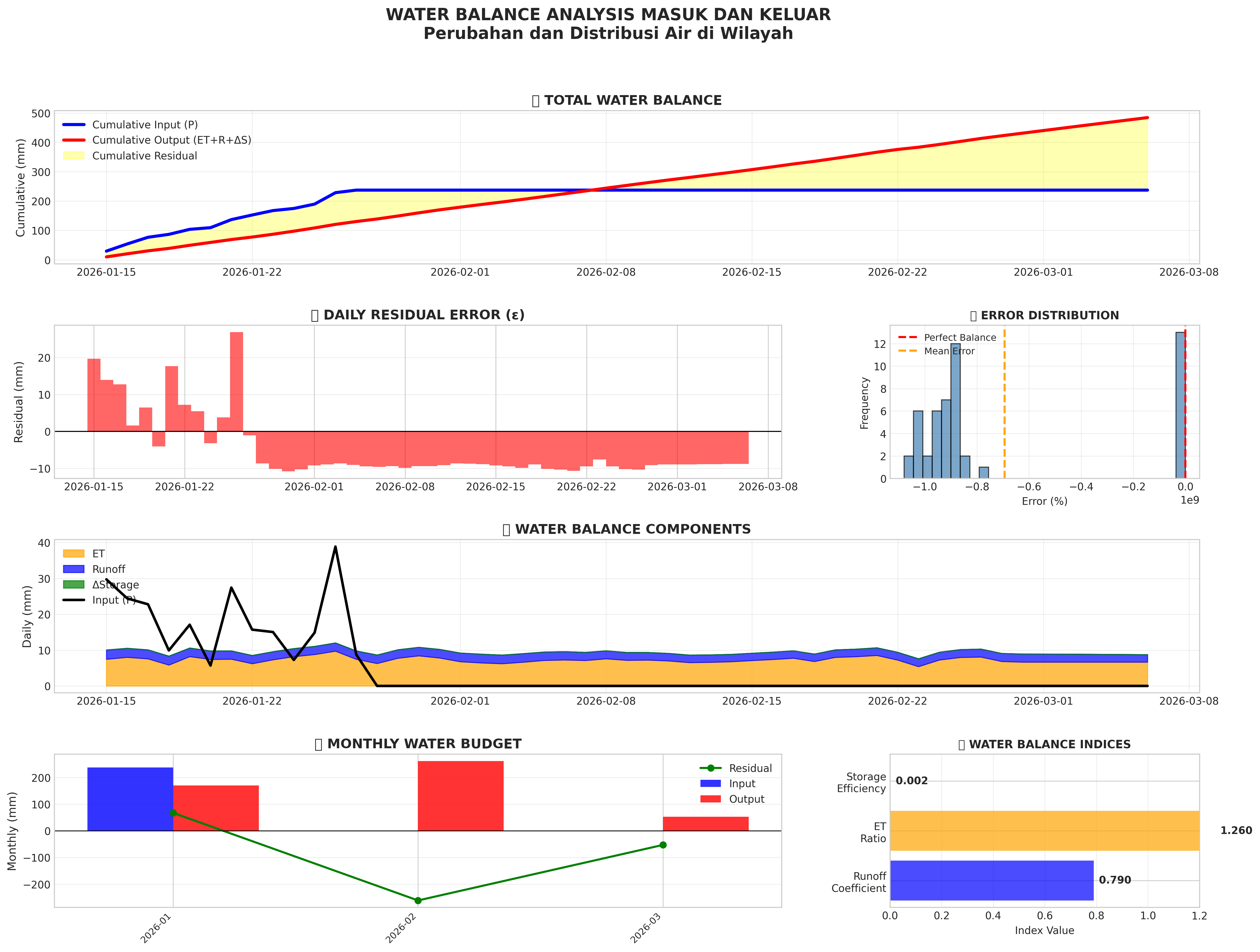 Water balance visualization: input vs output, hydrological components