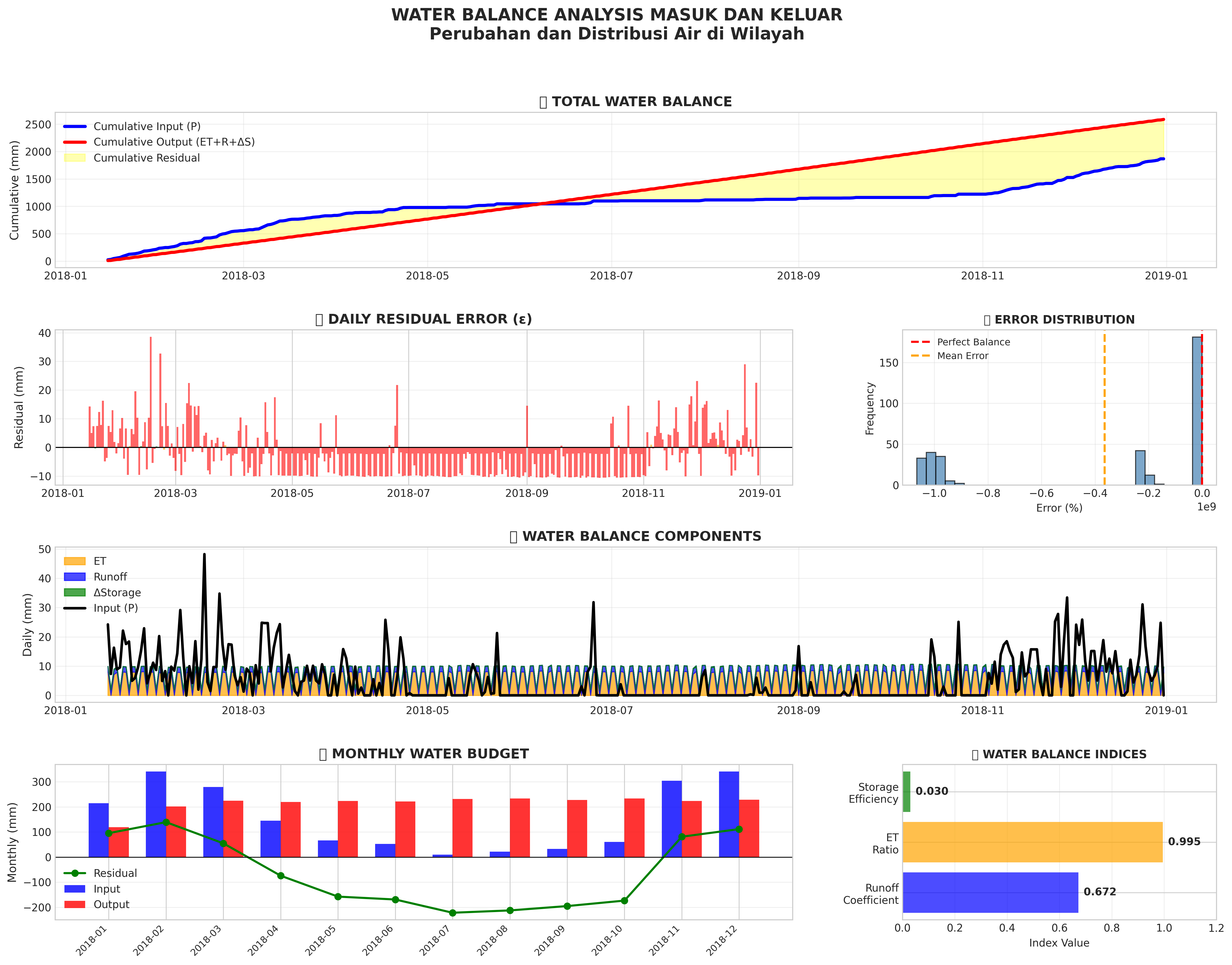 Water balance visualization: input vs output, hydrological components