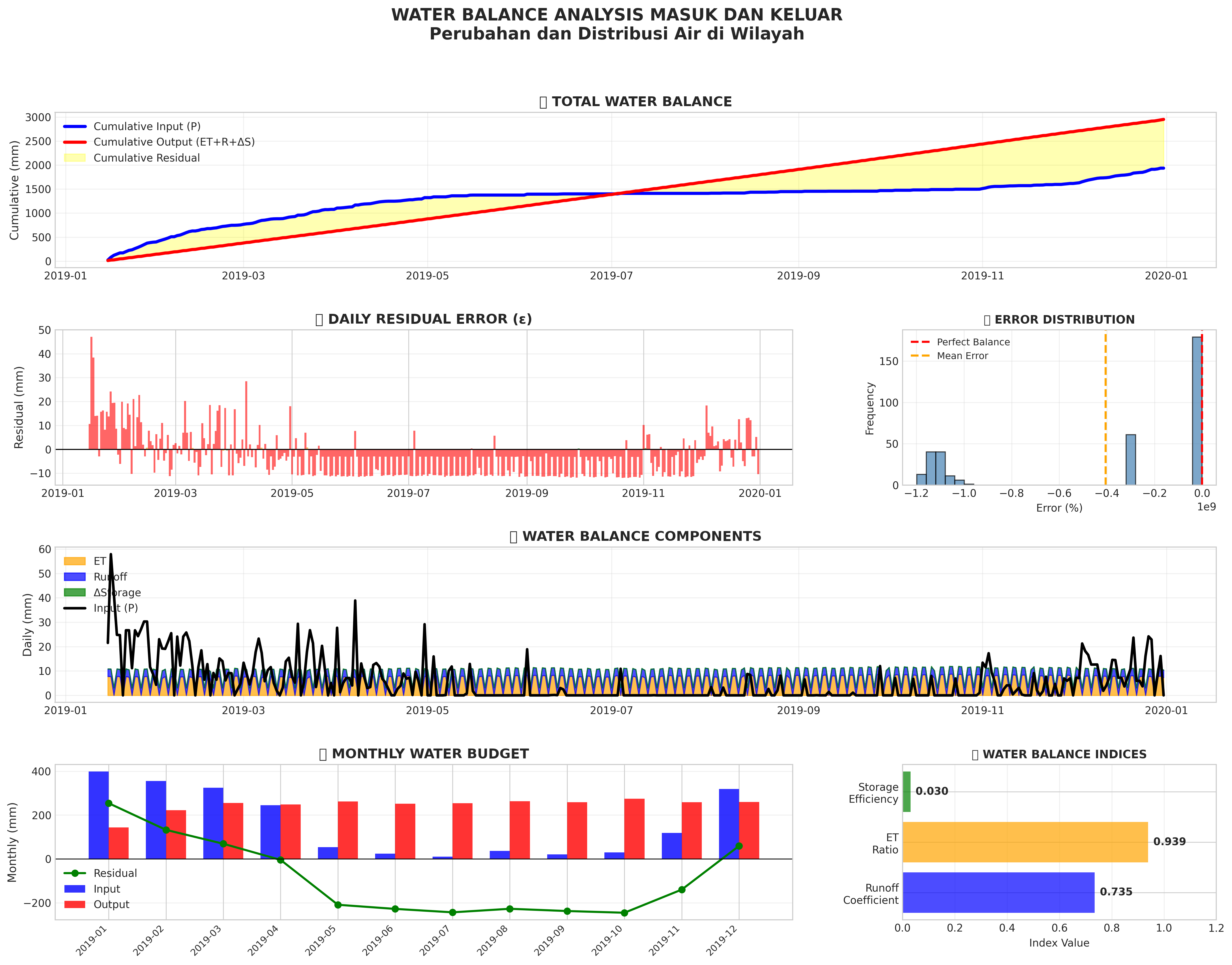 Water balance visualization: input vs output, hydrological components