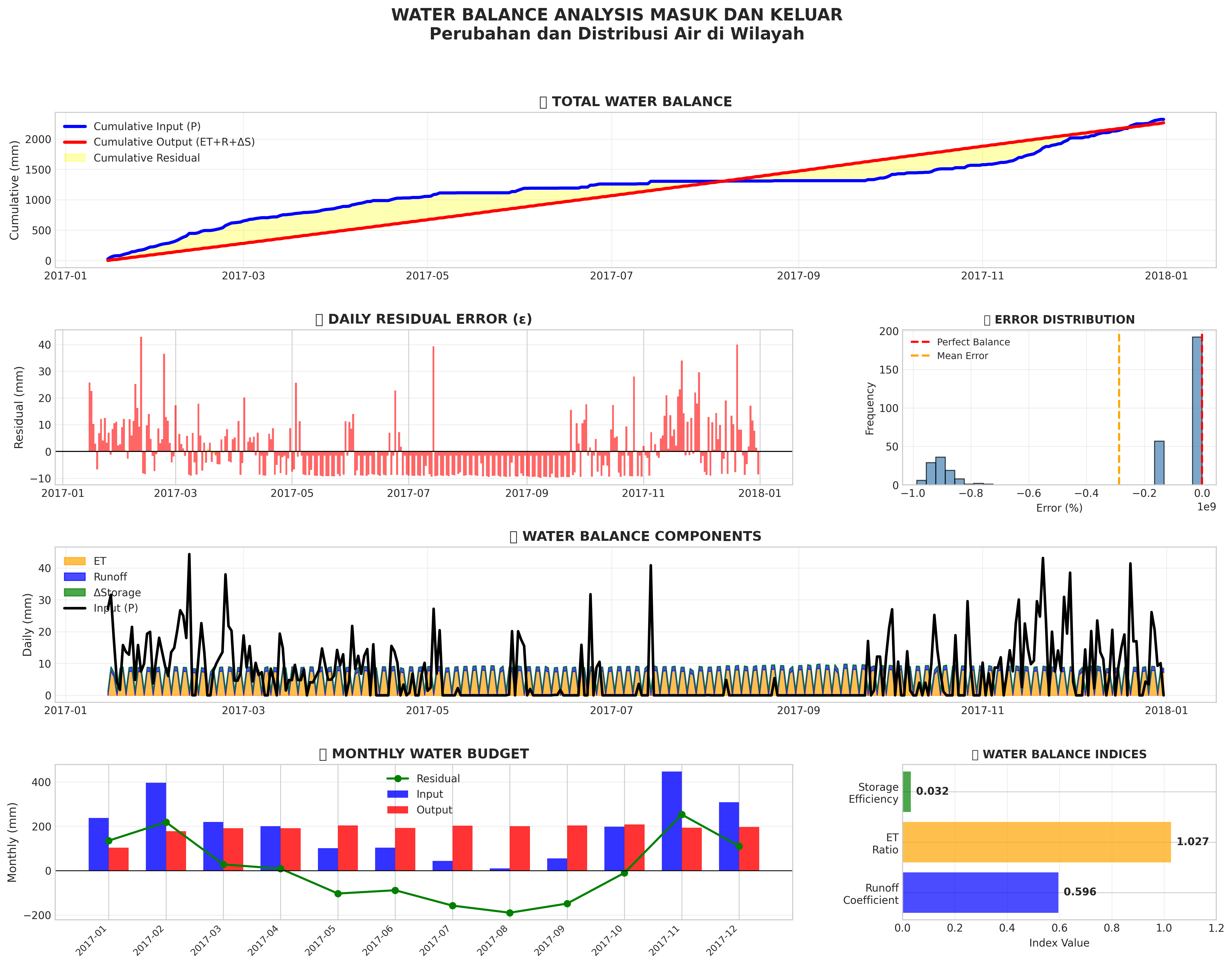 Water balance visualization: input vs output, hydrological components