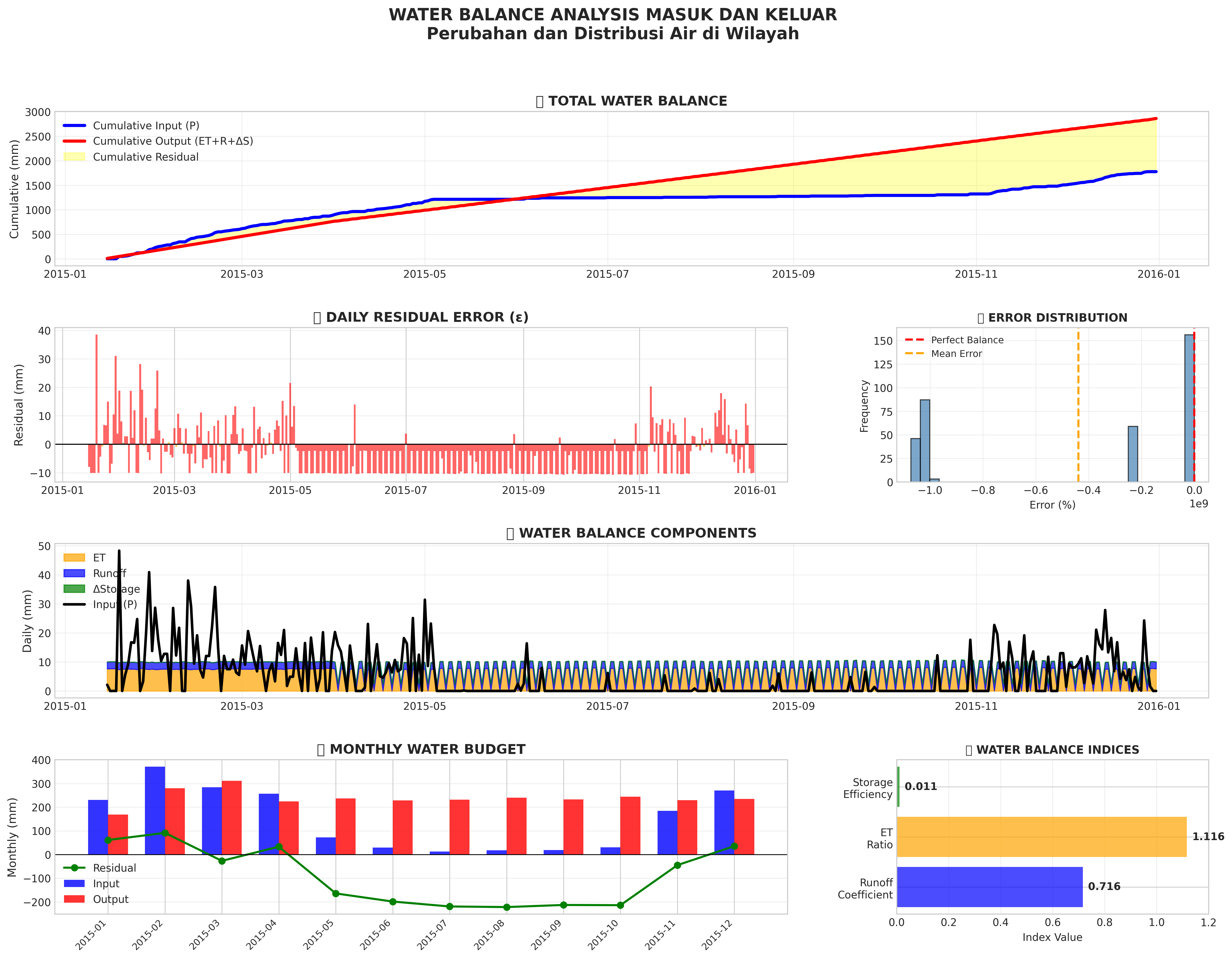 Water balance visualization: input vs output, hydrological components