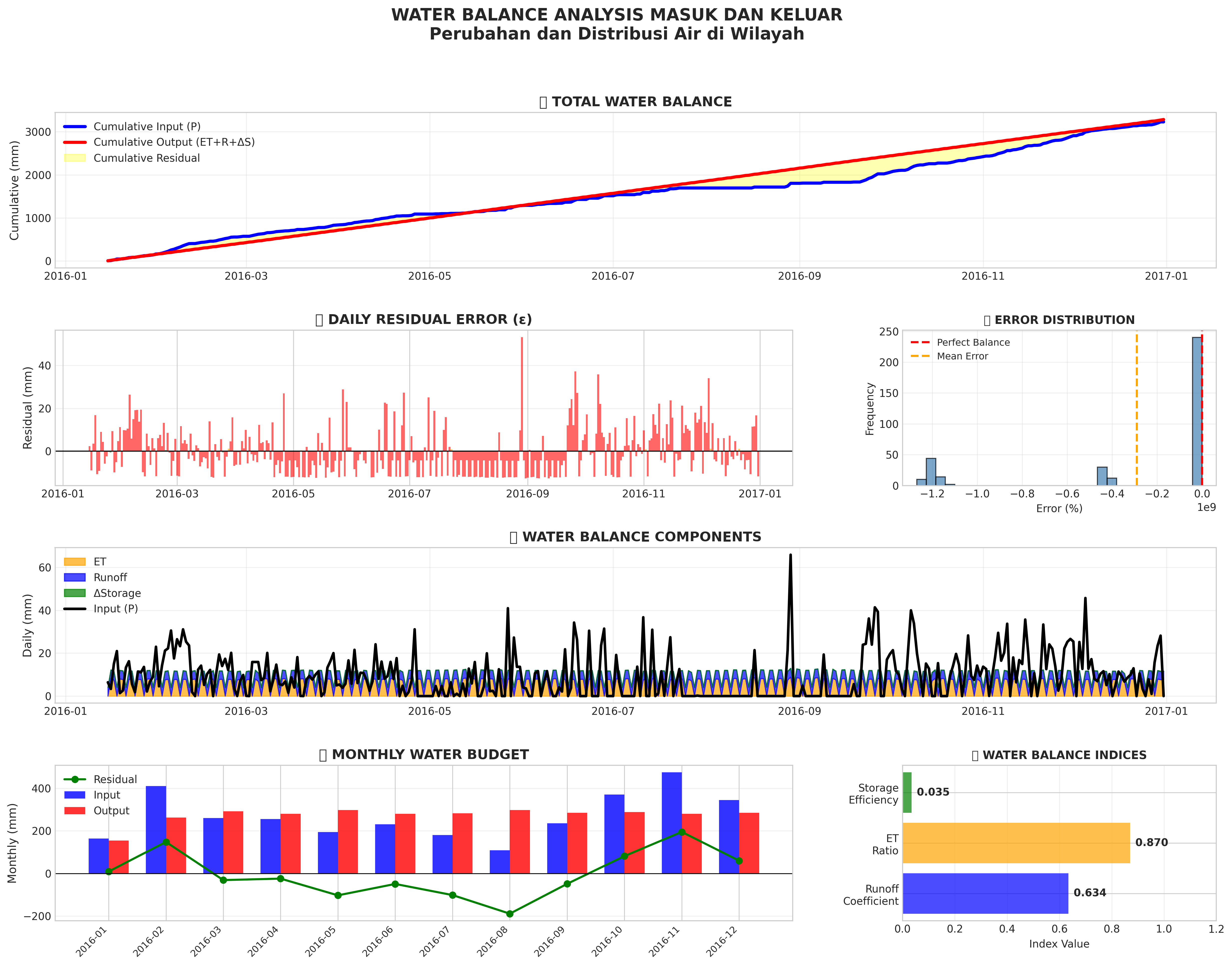 Water balance visualization: input vs output, hydrological components